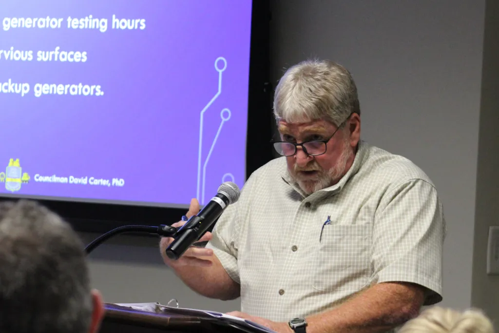 New Castle County Councilman Dave Carter speaks about data centers at a planning board meeting in October 2025. | SPOTLIGHT DELAWARE PHOTO BY OLIVIA MARBLE