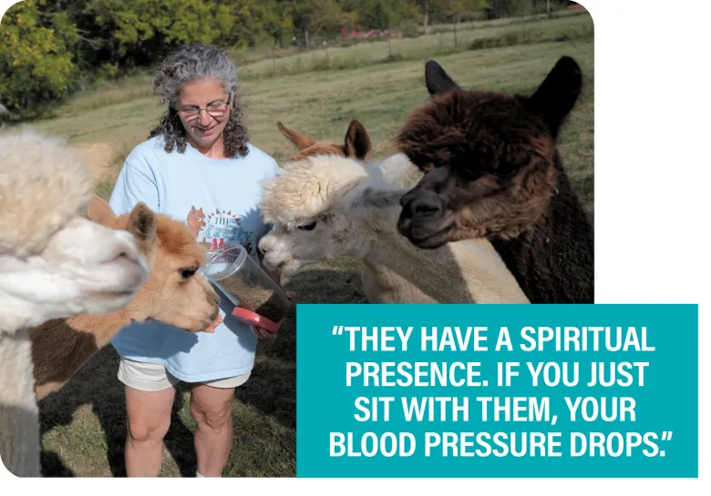 “I just hope that people we’ve come in contact with see our love, and how much we appreciate being able to share it with them,” she says. “There won’t be a second generation of our family farming alpacas. But I hope the farm itself becomes a legacy.”